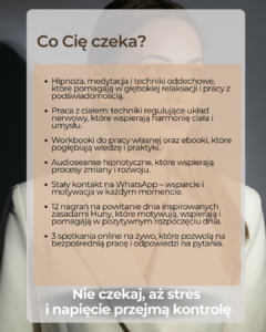 ✅ Dostęp do potężnych narzędzi terapeutycznych – otrzymasz nagrania audio z hipnozą, medytacjami i afirmacjami, które pomogą Ci zmienić wzorce myślowe i budować wewnętrzną siłę